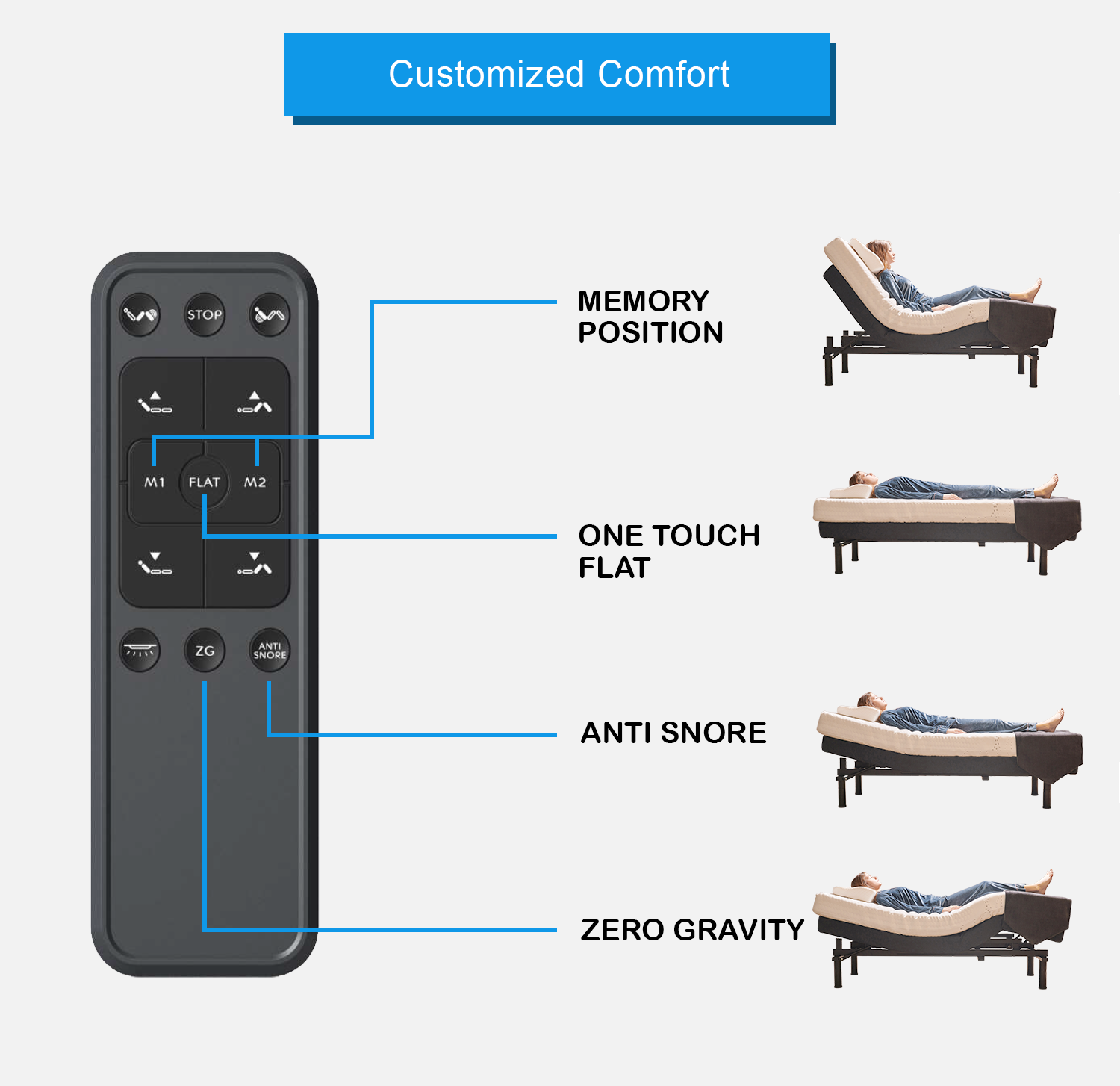 MULTI POSITION - Comes ready with positional presets such as Zero Gravity, Lounge, and TV. The bed is also fully programmable to the positions of your preference.
