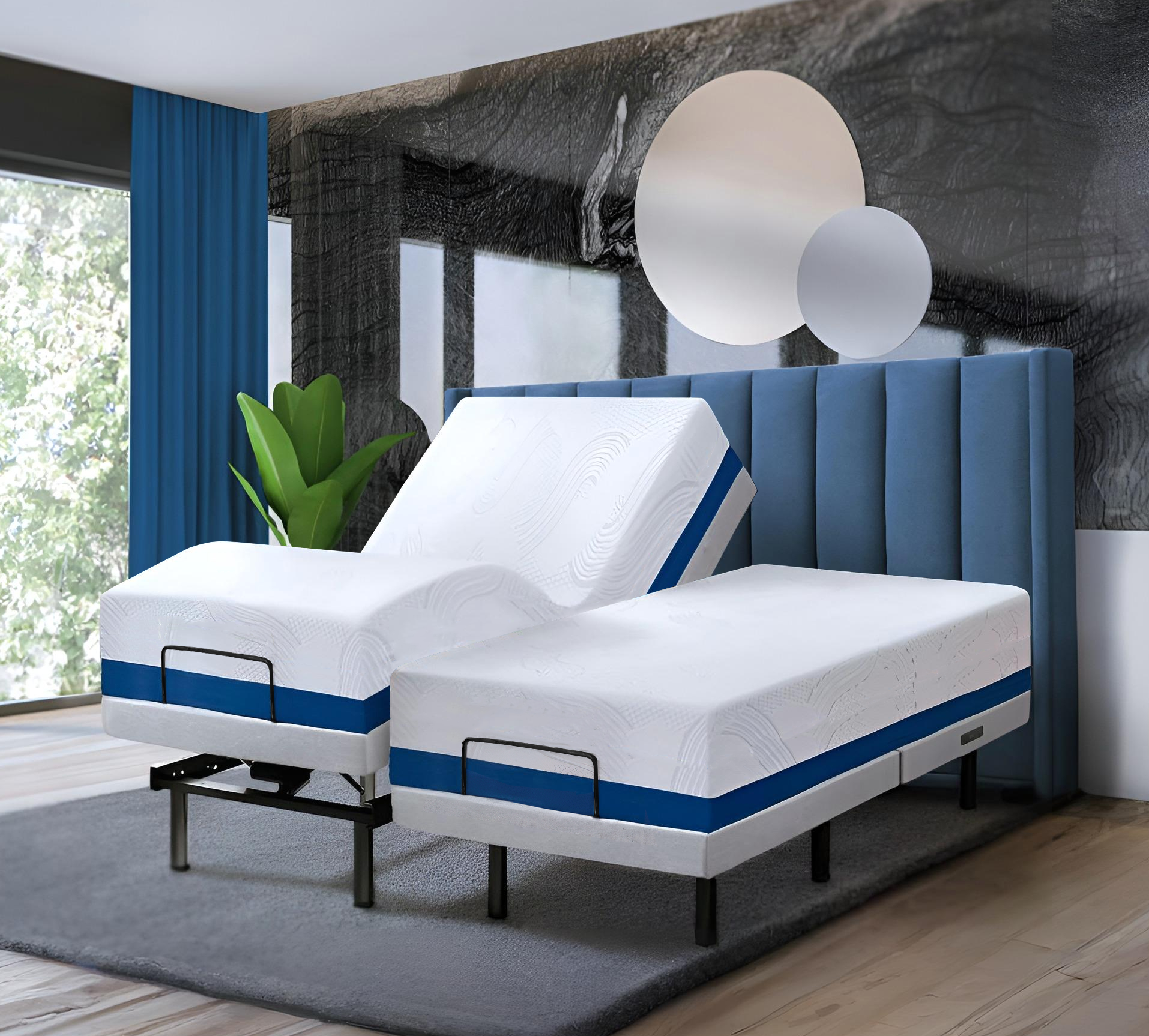 SUPERIOR COMFORT - The adjustable bed can independently incline the head by approximately 60 degrees and the feet by 45 degrees giving you full control over your own comfort. By sleeping at an angle, your airways open up to prevent congestion and snoring, and it straightens your spine for less back pain.