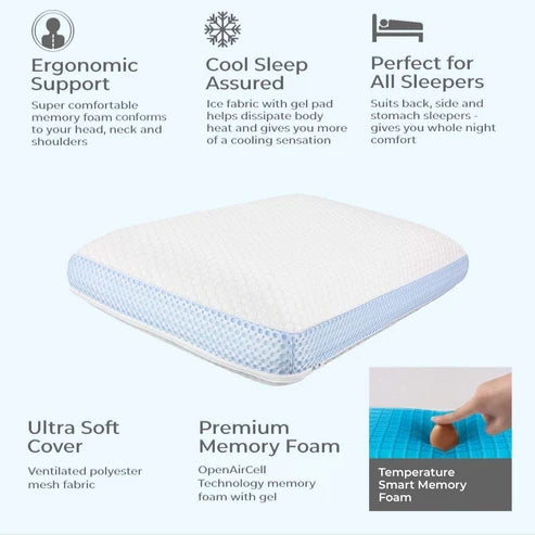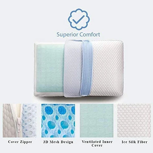 Cooling Ventilated Gel Memory Foam Pillow. Orthopedic Support, Neck and Back Support, Washable Cover.